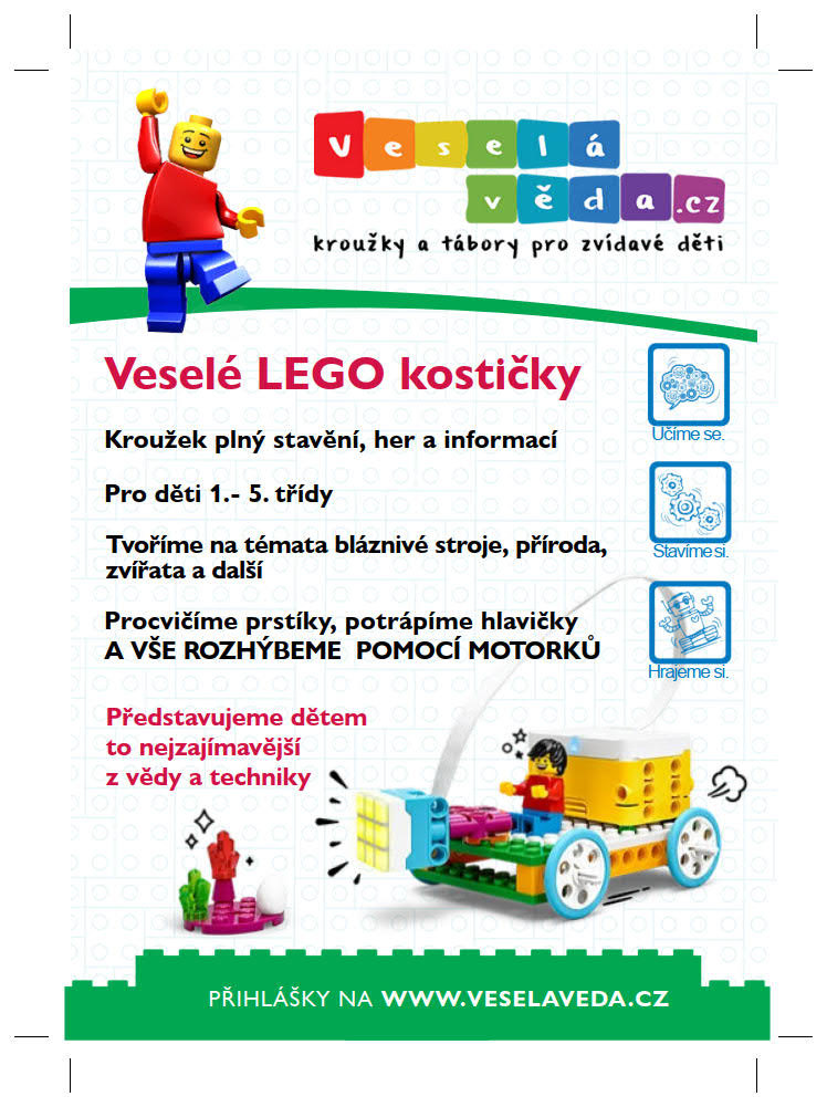 Děti si na našich lekcích zlepšují jemnou motoriku a prohlubují technické znalosti nenásilnou formou. Na vybraných lekcích pak mají možnost probudit svou kreativitu a rozpohybovat si vlastní projekt.